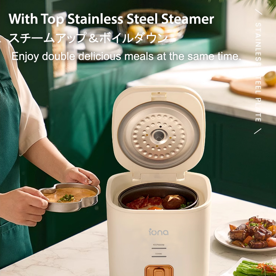 IONA 0.8L Small Mini Rice Cooker Non Stick With Steamer | Multi Function Rice Cooker | 一鍵式电饭锅 電飯鍋 - GLRC085