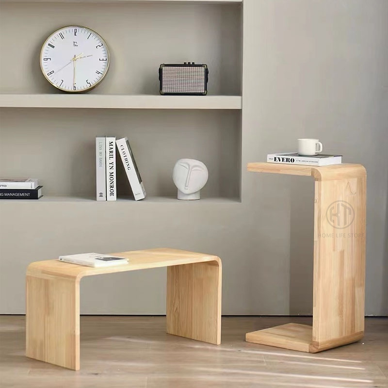KT-zone Side Table Solid Wood U-shaped Bedside Table C- Shaped Tatami Storage Rack Small-sized Corner Creative Bedside Sofa Side Living Room Tea Table